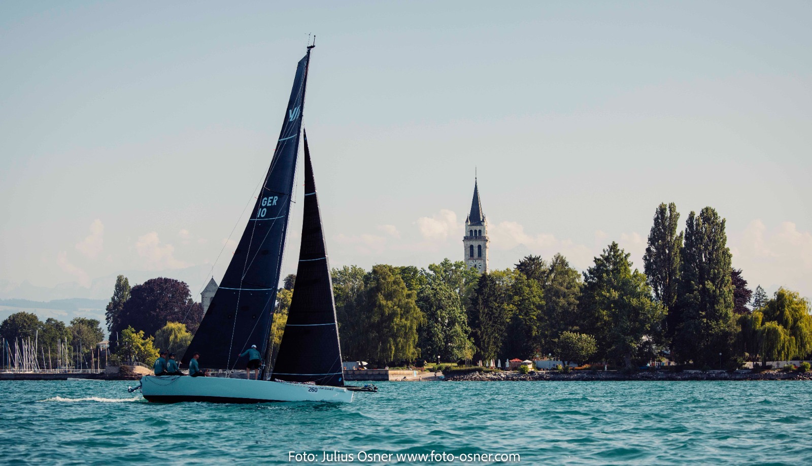 Mit Leidenschaft und Präzision zum Erfolg Burkart und Steidle traten bei allen Langstreckenklassikern 2025 in der Doublehand- Konfiguration an – nur bei der Rund Um und der Altnauer Tag- und Nachtregatta wurde die Crew um zwei Segler erweitert. „Ich habe mich vor rund 15 Jahren in dieses Boot schockverliebt“, erzählt Burkart. „Es war Liebe auf den ersten Blick – und diese Leidenschaft trägt uns bis heute über den See.“ Auch Florian Steidle, der neben seiner Rolle an Bord auch Crewkoordination und Shorecrew in einer Person vereint, zeigt vollen Einsatz – nicht nur auf dem Wasser: „Auch privat bin ich Doublehand unterwegs“, sagt er augenzwinkernd. „Unser Projekt heißt Matteo, ist jetzt ein Jahr alt – und meine Partnerin Alexandra hält mir den Rücken frei. Dafür bin ich ihr unendlich dankbar.“